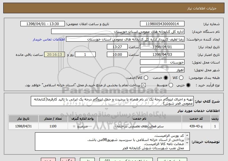 نام دستگاه خریدار:اداره کل کتابخانه های عمومی استان خوزستان