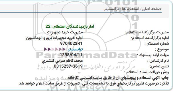 اداره برگزارکننده استعلام: اداره خرید تجهیزات برق و اتوماسیون