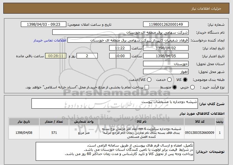 شرح کلی نیاز: شیشه دوجداره با مشخصات پیوست