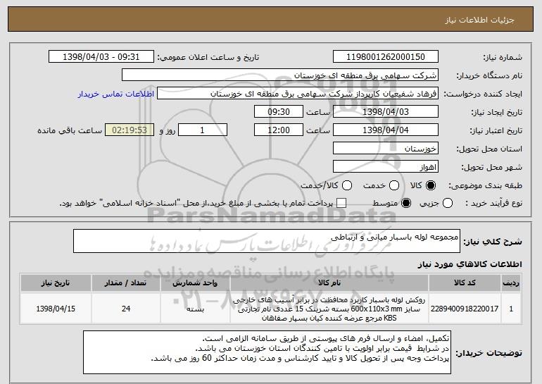نام دستگاه خریدار:شرکت سهامی برق منطقه ای خوزستان