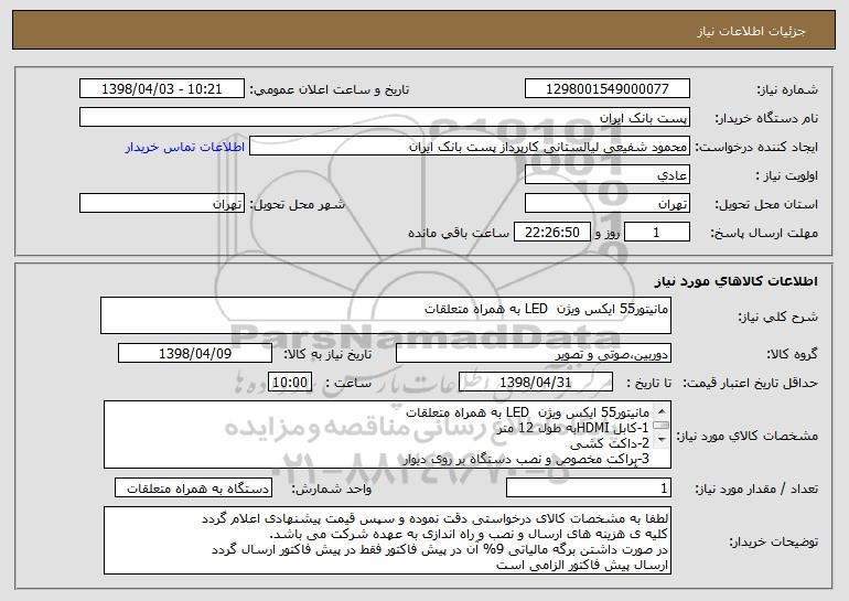 نام دستگاه خریدار:پست بانک ایران