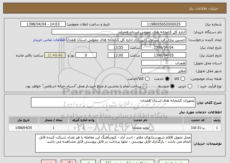 شرح کلی نیاز: تجهیزان کتابخانه های استان همدان-