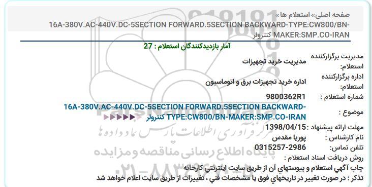 موضوع : 16A-380V.AC-440V.DC-5SECTION FORWARD.5SECTION BACKWARD-TYPE:CW800/BN-MAKER:SMP.CO-IRAN كنترولر