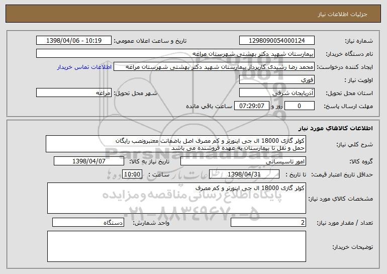 نام دستگاه خریدار:بیمارستان شهید دکتر بهشتی شهرستان مراغه