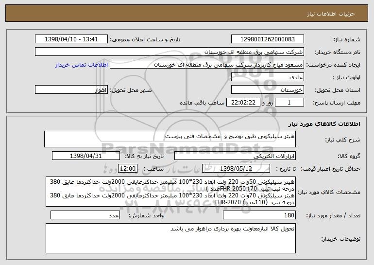 نام دستگاه خریدار:شرکت سهامی برق منطقه ای خوزستان