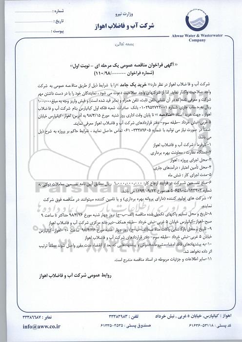 آگهی فراخوان مناقصه عمومی یک مرحله ای ؟