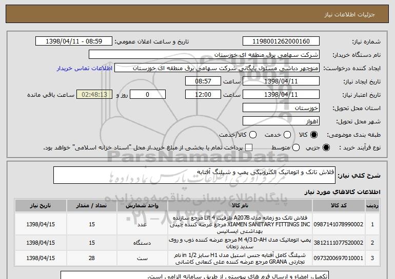 نام دستگاه خریدار:شرکت سهامی برق منطقه ای خوزستان