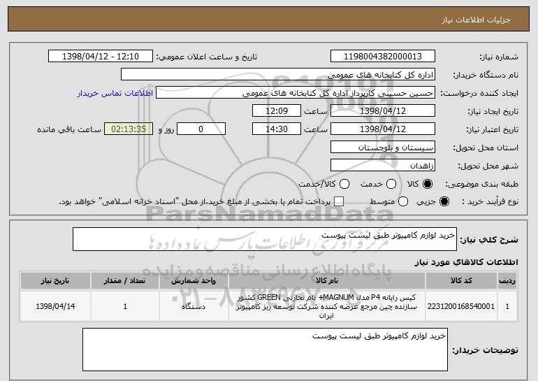 شرح کلی نیاز: خرید لوازم کامپیوتر طبق لیست پیوست