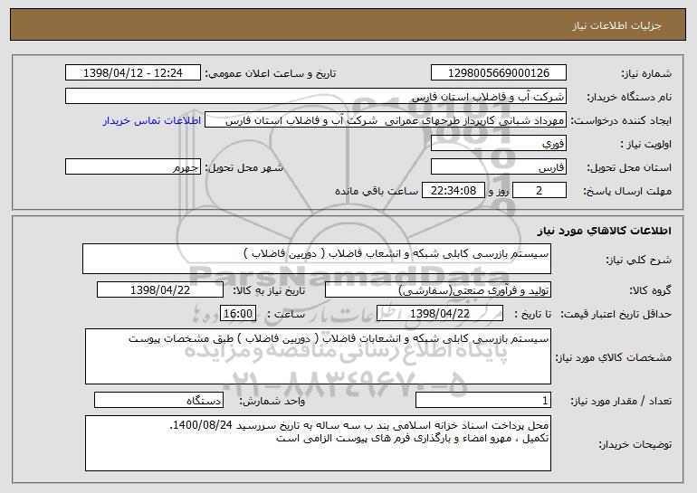 نام دستگاه خریدار:شرکت آب و فاضلاب استان فارس