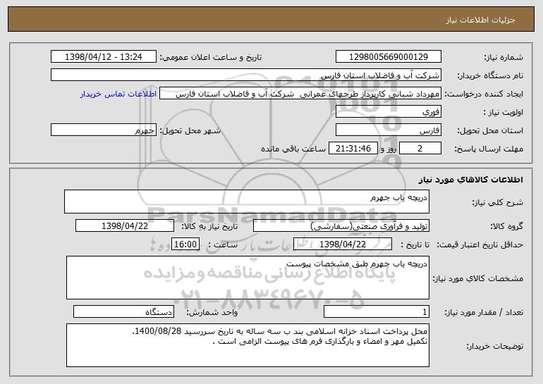 نام دستگاه خریدار:شرکت آب و فاضلاب استان فارس