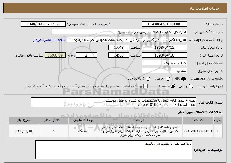شرح کلی نیاز: تهیه 4 عدد رایانه کامل با مشخصات ذر شده در فایل پیوست