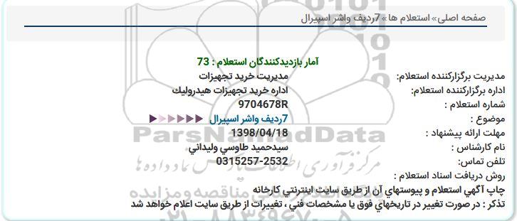 استعلام 7 ردیف واشر اسپیرال , استعلام, استعلام 7 ردیف واشر اسپیرال