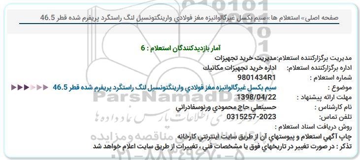اداره برگزارکننده استعلام: اداره خرید تجهیزات مکانیک