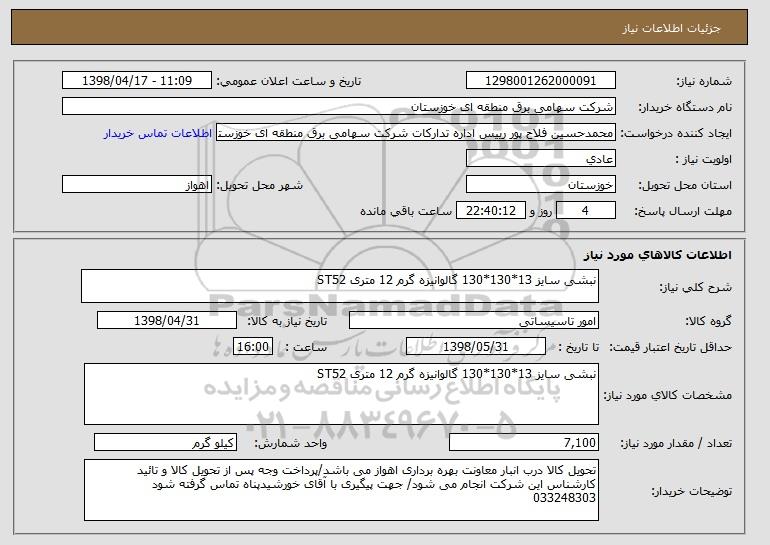 نام دستگاه خریدار:شرکت سهامی برق منطقه ای خوزستان