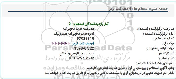 اداره برگزارکننده استعلام:     اداره خرید تجهیزات هیدرولیک