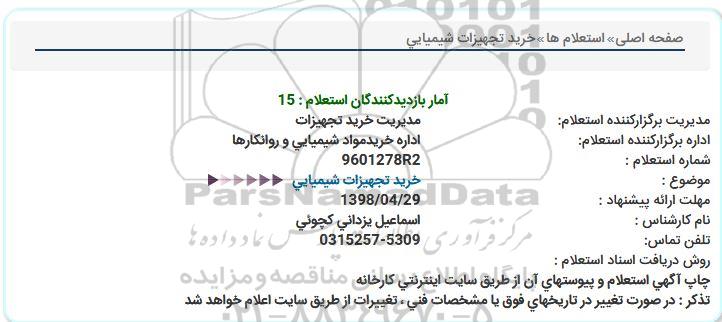 چاپ آگهی استعلام و پیوستهای آن از طریق سایت اینترنتی كارخانه