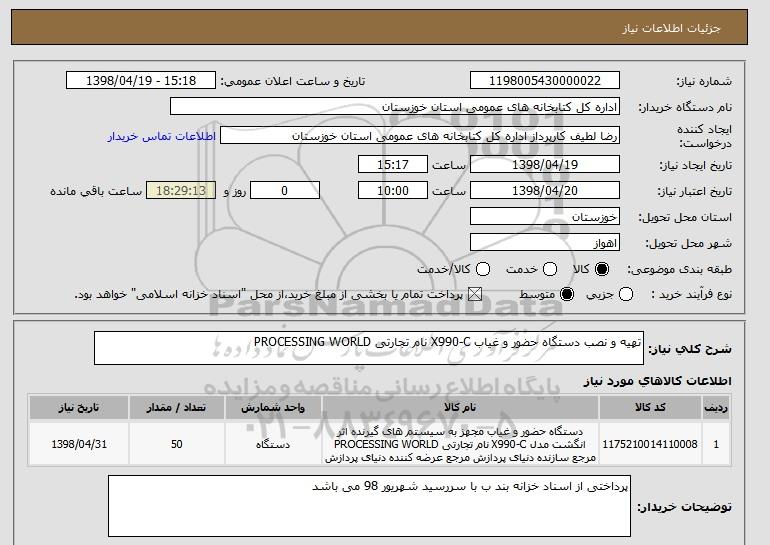 استعلام تهیه و نصب دستگاه حضور و غیاب X990-C نام تجارتی PROCESSING WORLD , استعلام تهیه و نصب دستگاه حضور و غیاب X990-C نام تجارتی PROCESSING WORLD