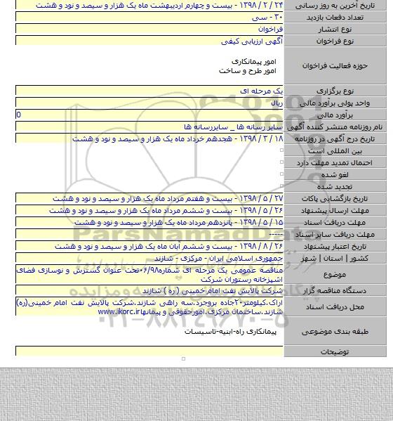 مناقصه عمومی یک مرحله ای شماره۰۶/۹۸تحت عنوان گسترش و نوسازی فضای اشپزخانه رستوران شرکت