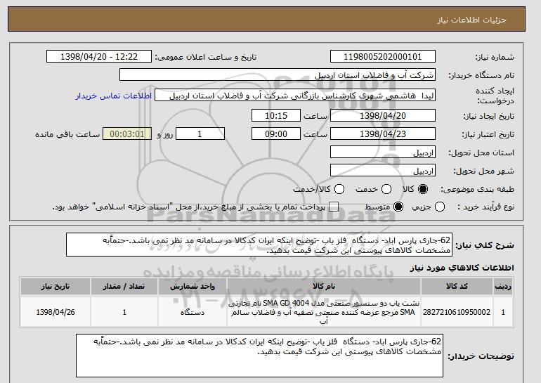 نام دستگاه خریدار:شرکت آب و فاضلاب استان اردبیل