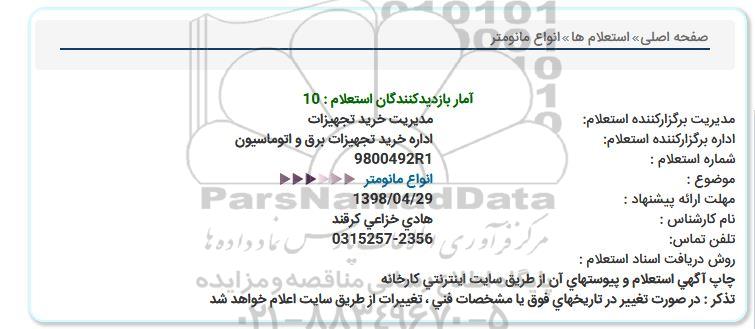 اداره برگزارکننده استعلام:     اداره خرید تجهیزات برق و اتوماسیون