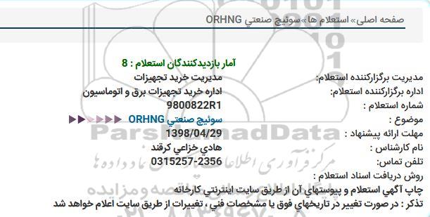 اداره برگزارکننده استعلام: اداره خرید تجهیزات برق و اتوماسیون