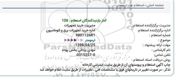 اداره برگزارکننده استعلام: اداره خرید تجهیزات برق و اتوماسیون
