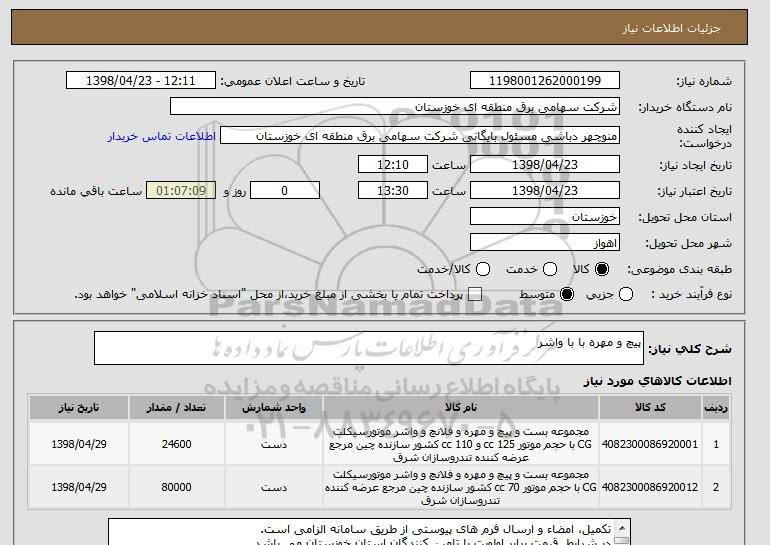 نام دستگاه خریدار:شرکت سهامی برق منطقه ای خوزستان