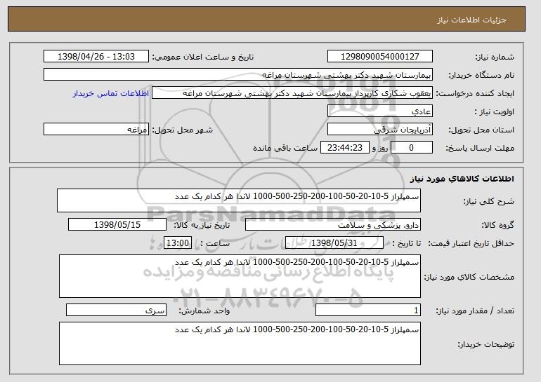 نام دستگاه خریدار:بیمارستان شهید دکتر بهشتی شهرستان مراغه