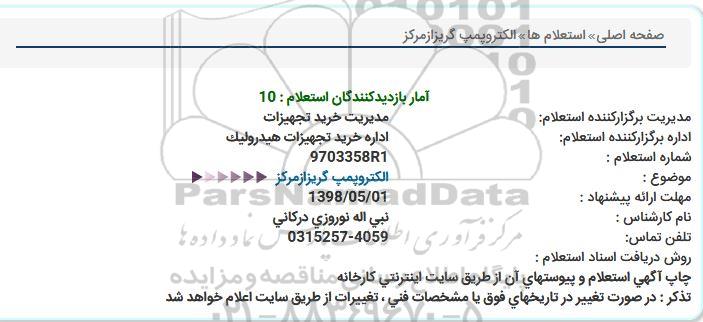اداره برگزارکننده استعلام: اداره خرید تجهیزات هیدرولیک