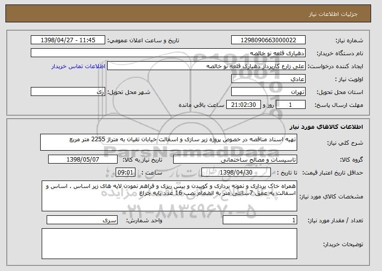 نام دستگاه خریدار:دهیاری قلعه نو خالصه