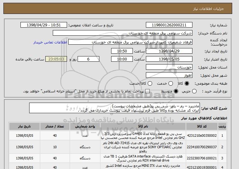 نام دستگاه خریدار:شرکت سهامی برق منطقه ای خوزستان