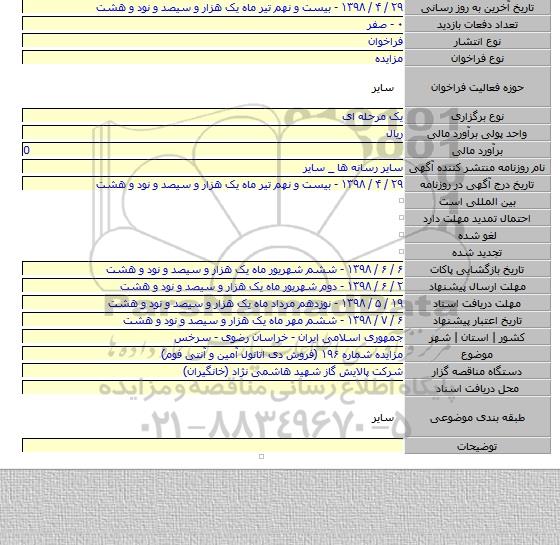 مزایده شماره ۱۹۶ (فروش دی اتانول آمین و آنتی فوم)
