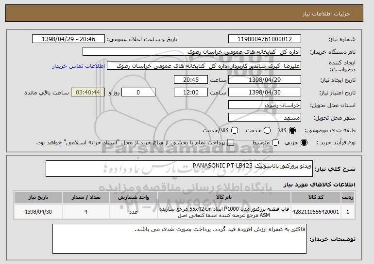 نام دستگاه خریدار:اداره کل کتابخانه های عمومی خراسان رضوی