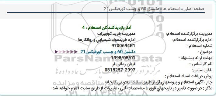استعلام دکسیل 60 و چسب کورفیکس 21 , استعلام , استعلام دکسیل 60 و چسب کورفیکس 21