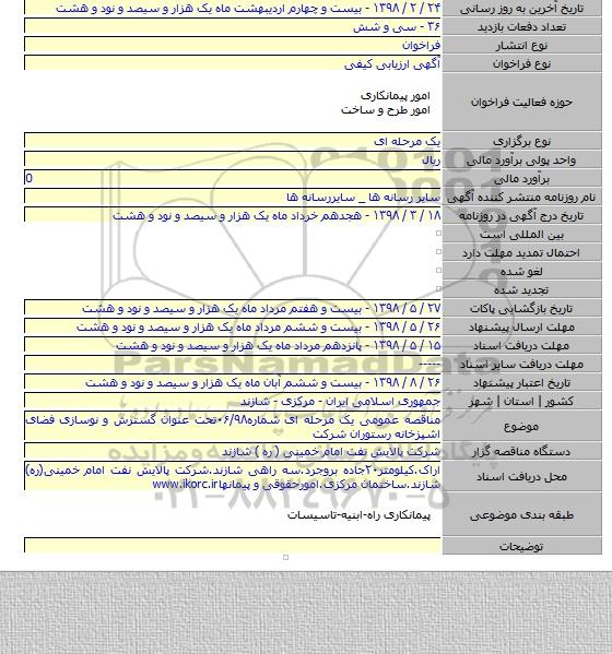 مناقصه عمومی یک مرحله ای شماره۰۶/۹۸تحت عنوان گسترش و نوسازی فضای اشپزخانه رستوران شرکت