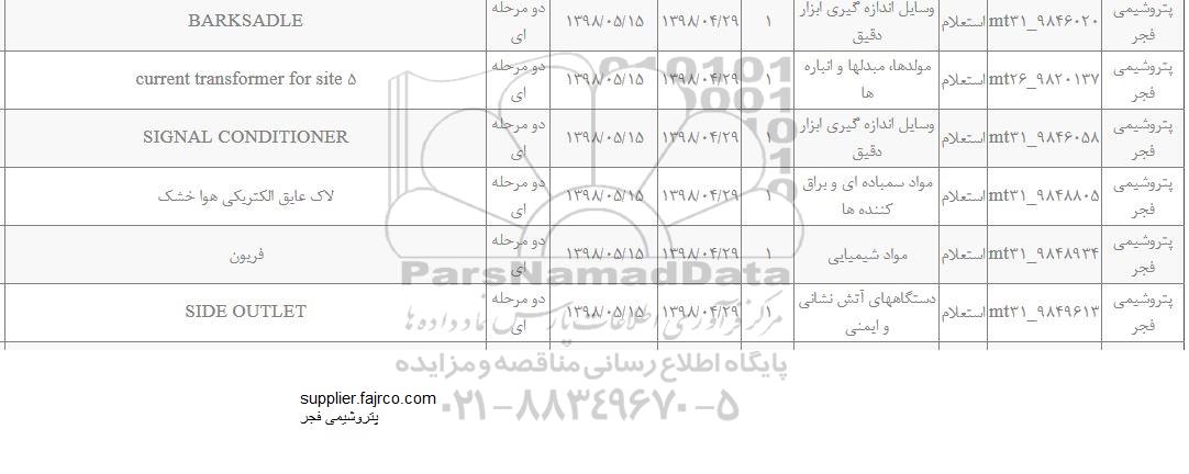 MT31-9848805 | مواد سمباده ای و یراق کننده ها | 1 | 98.4.29 | 98.5.15 | لاک عایق الکتریکی هوا خشک |