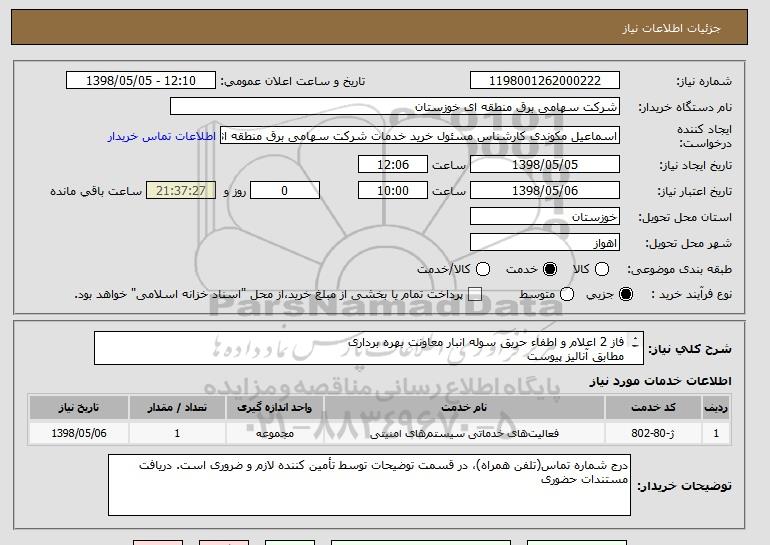 نام دستگاه خریدار:شرکت سهامی برق منطقه ای خوزستان