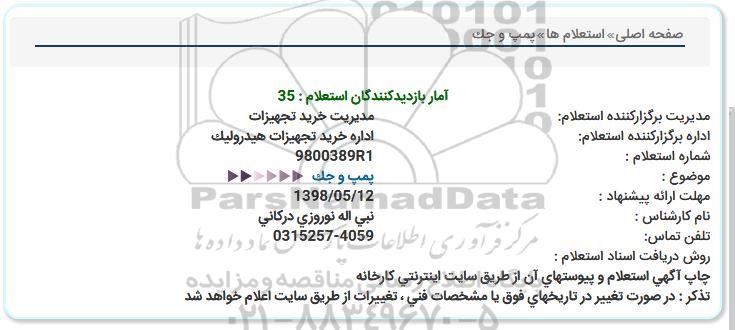 اداره برگزارکننده استعلام: اداره خرید تجهیزات هیدرولیک