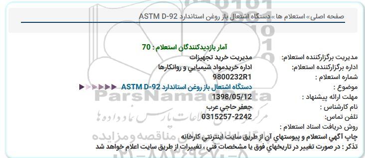 موضوع : دستگاه اشتغال باز روغن استاندارد astm d-92
