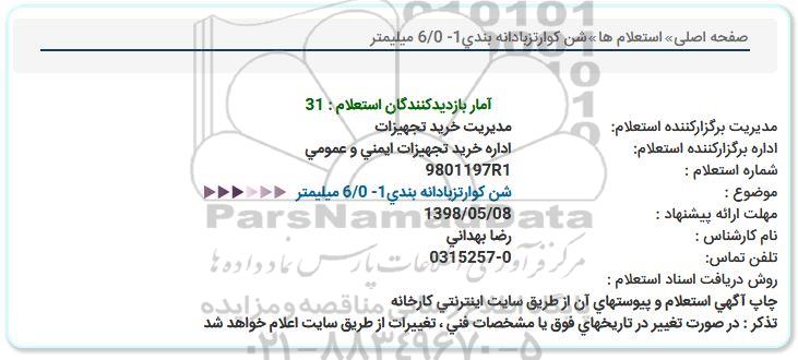 اداره برگزارکننده استعلام: اداره خرید تجهیزات ایمنی و عمومی