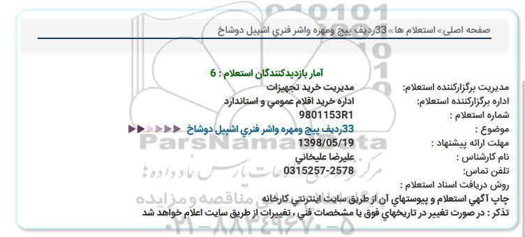 اداره برگزارکننده استعلام: اداره خرید اقلام عمومی و استاندارد