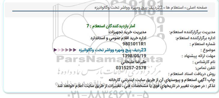 اداره برگزارکننده استعلام: اداره خرید اقلام عمومی و استاندارد