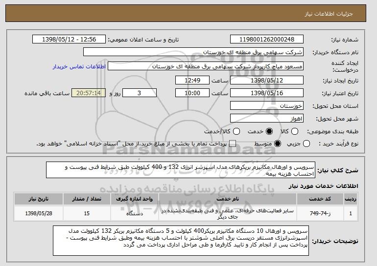 نام دستگاه خریدار:شرکت سهامی برق منطقه ای خوزستان