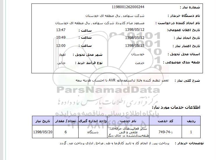 نام دستگاه خریدار:شرکت سهامی برق منطقه ای خوزستان