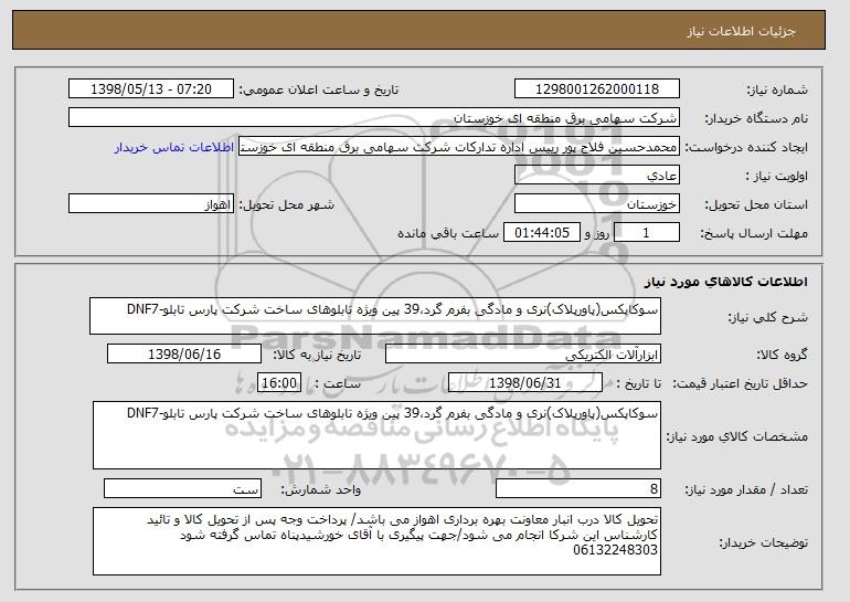 نام دستگاه خریدار:شرکت سهامی برق منطقه ای خوزستان