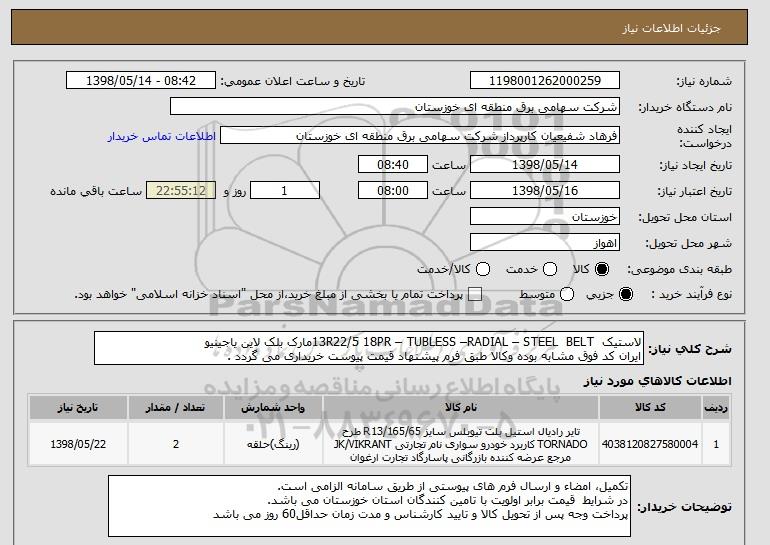 نام دستگاه خریدار:شرکت سهامی برق منطقه ای خوزستان