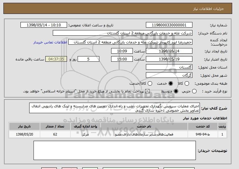 نام دستگاه خریدار:شرکت غله و خدمات بازرگانی منطقه 2 استان گلستان