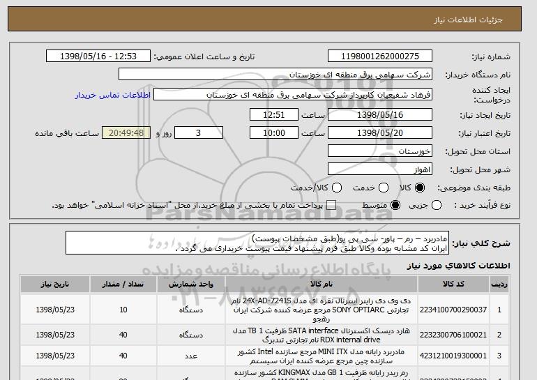 نام دستگاه خریدار:شرکت سهامی برق منطقه ای خوزستان