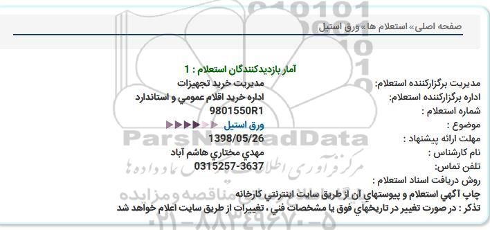 اداره برگزارکننده استعلام: اداره خرید اقلام عمومی و استاندارد