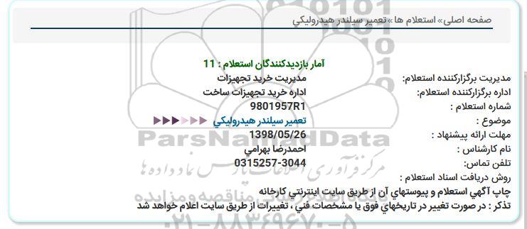 استعلام تعمیر سیلندر هیدرولیکی , استعلام , استعلام تعمیر سیلندر هیدرولیکی